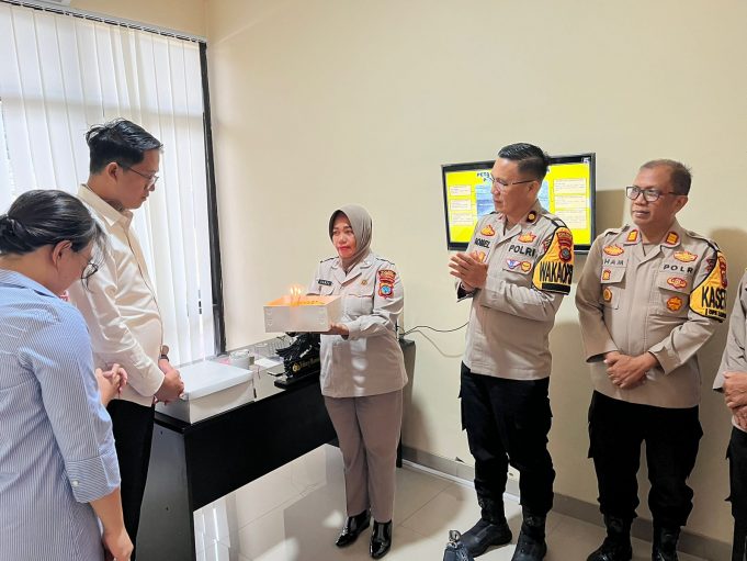 HUMAS POLRES KOTAMOBAGU — Wakapolres Kotamobagu Kompol Romel Pontoh SIP MAP memberikan surprise ulang tahun kepada Kasat Intelkam, Iptu Falery Marendes SH MH, pada momen sederhana namun penuh makna di lingkungan Polres Kotamobagu, Senin (22/12/2025).
