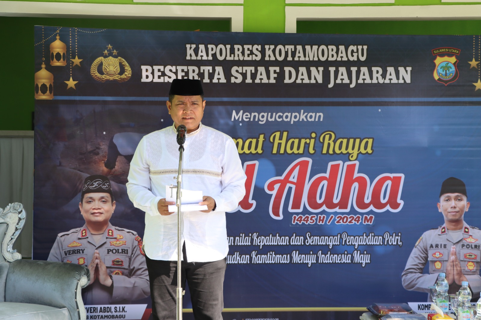 Kapolres Kotamobagu AKBP Dasveri Abdi, SIK hadir menyaksikan langsung sekaligus ikut berQurban Sapi pada tahun ini.