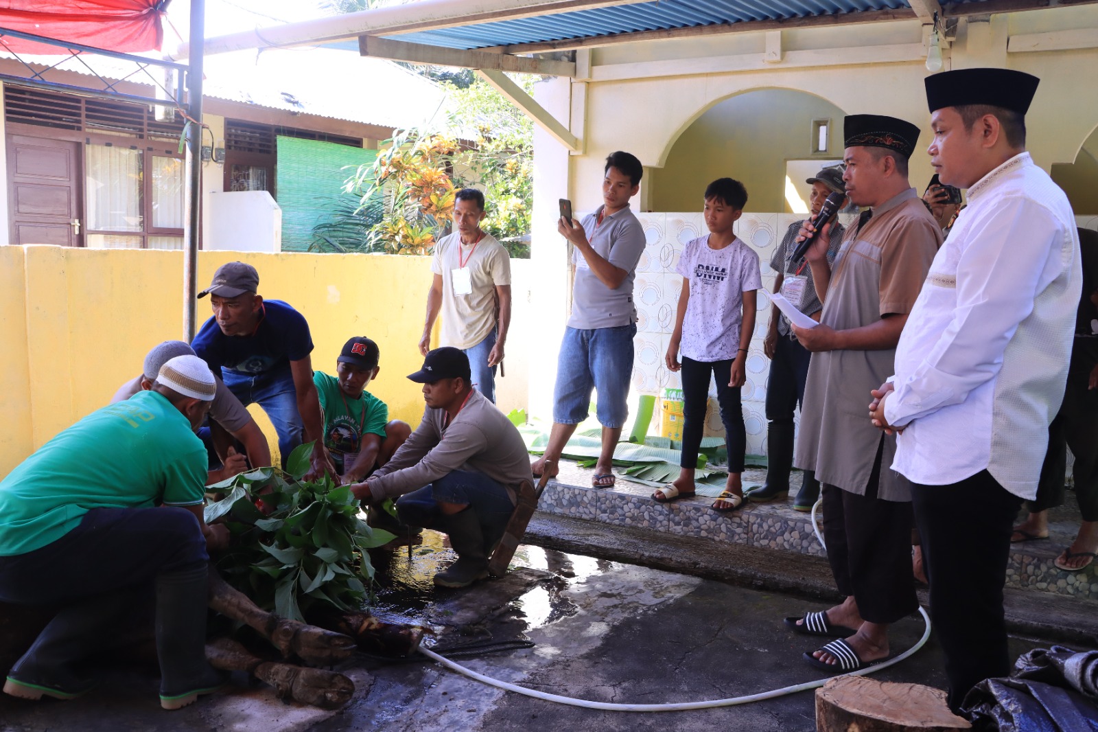 Kapolres Kotamobagu AKBP Dasveri Abdi, SIK menyaksikan langsung proses penyembelihan hewan kurban di Mapolres jalan Paloko Kinalang Kotamobagu