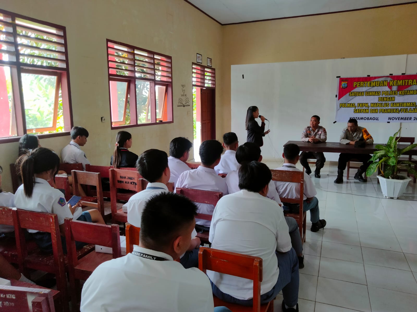 Kegiatan yang dipimpin oleh KBO Satbinmas Polres Kotamobagu Iptu Ahkmad K Asjhari ini diikuti oleh para guru beserta siswa siswi SMK Kristen Kotamobagu. Wakil Kepala Sekolah Ibu Roselily Rumpesak, ST dalam sambutannya berharap kegiatan ini bisa menjadi bekal berharga bagi siswa di masa depan.
