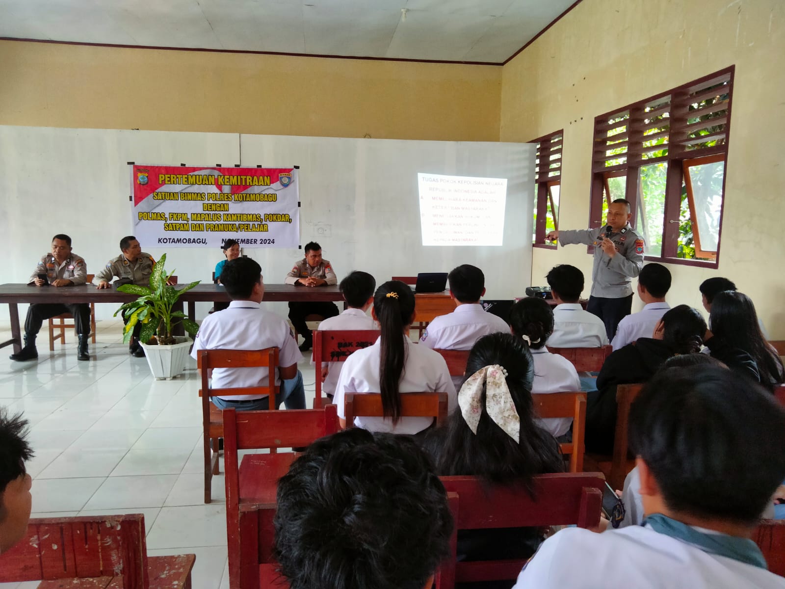 HUMAS POLRES KOTAMOBAGU – Satuan Binmas Polres Kotamobagu kembali menggelar kegiatan pertemuan dan pembinaan kemitraan Polmas. Kali ini kegiatan tersebut dilaksanakan di SMK Kristen Kotamobagu dengan tujuan untuk meningkatkan pemahaman hukum dan kesadaran berperilaku positif di kalangan pelajar, Selasa (03/12/2024).