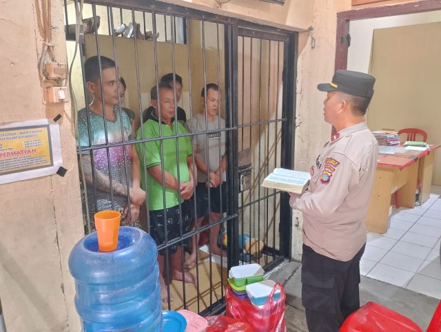 Dalam sesi pembinaan tersebut, Ipda Semmy Lengkong menyampaikan pesan-pesan moral yang diambil dari kitab suci serta mengajak para tahanan untuk merefleksikan diri melalui doa bersama.