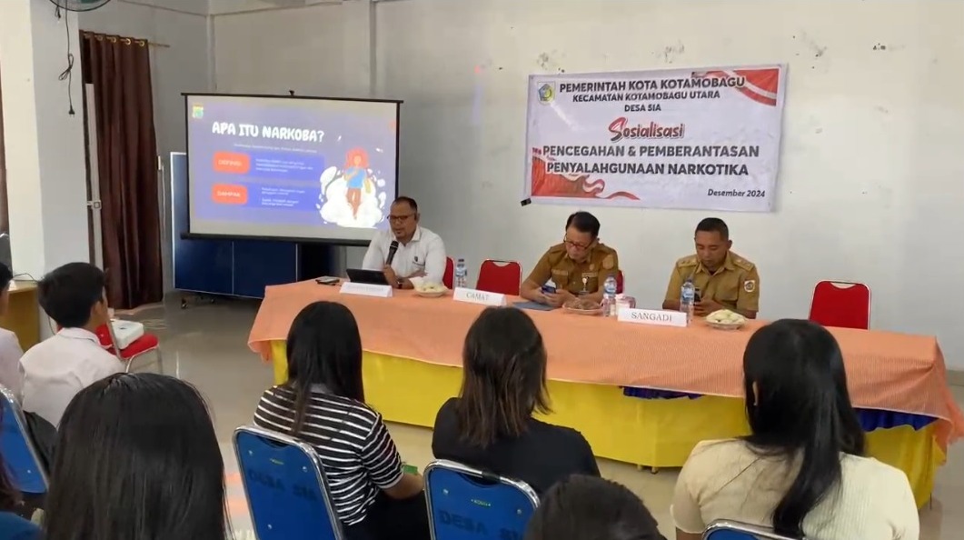 Kegiatan ini dihadiri oleh Camat Kotamobagu Utara, Muh. Dj. Edo Mopobela, SH, Sangadi Desa Sia, Danly Sistrodikromo, SPd, perangkat desa, serta anggota Sat Resnarkoba Polres Kotamobagu. Acara yang berlangsung di Aula Kantor Desa Sia ini dipimpin langsung oleh Kasat Resnarkoba Polres Kotamobagu IPTU Agung Uliana, SH, MAP, sebagai narasumber utama.