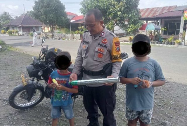 Dalam operasi yang digelar baru-baru ini, Bhabinkamtibmas Kelurahan Matali Aiptu Novianto Simbala, terjun langsung ke lapangan untuk melakukan penyitaan meriam tangan spritus dari sejumlah anak yang kedapatan menggunakannya. Tindakan tersebut dilakukan sebagai upaya preventif untuk mencegah potensi gangguan keamanan dan kecelakaan yang dapat ditimbulkan.