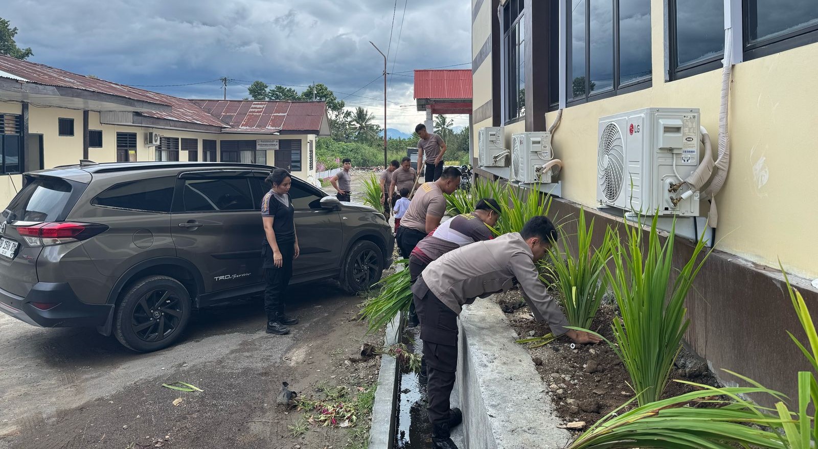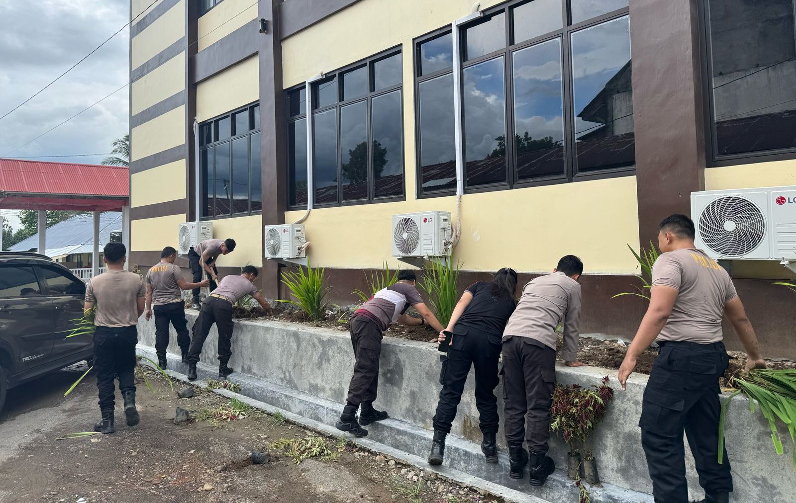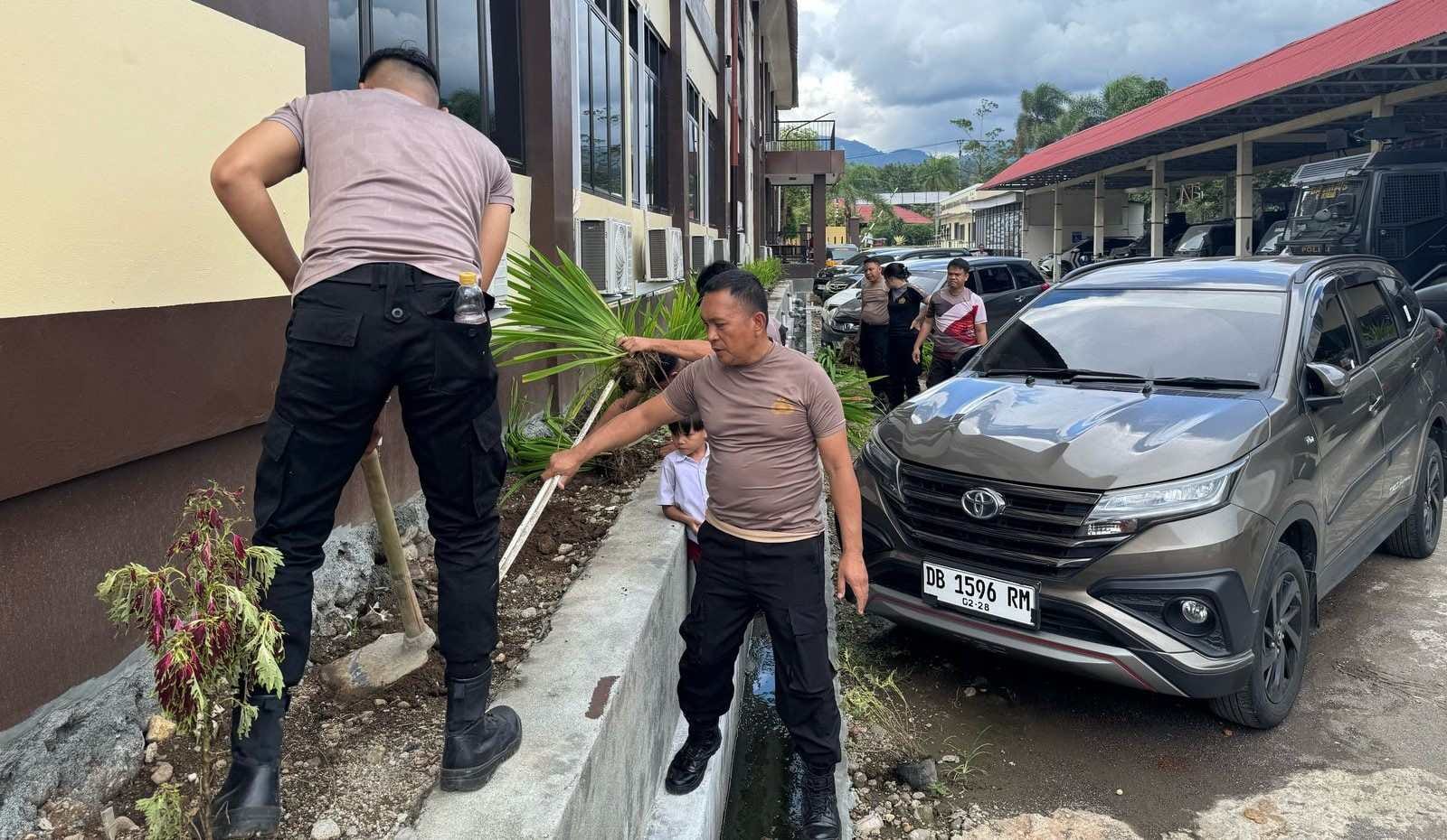 Dipimpin langsung oleh Kabag Ops Kompol Jendri S. Lewan SE, kegiatan penghijauan ini menyasar area-area strategis di sekitar bangunan utama. Puluhan jenis bunga dan tanaman hias ditanam secara rapi, memberikan nuansa segar dan asri yang memanjakan mata setiap orang yang datang maupun bertugas di mako tersebut.