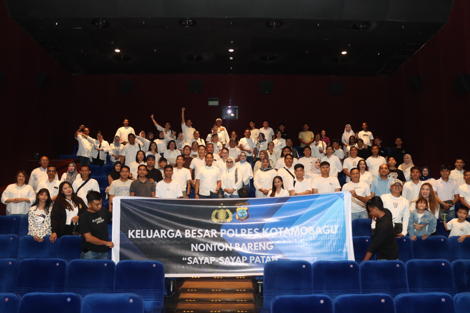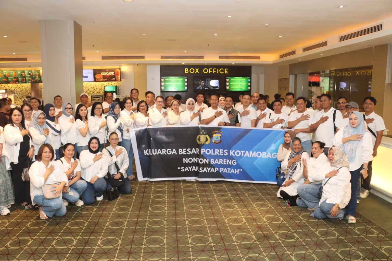 HUMAS POLRES KOTAMOBAGU – Kapolres AKBP Irwanto SIK MH, didampingi Ketua Bhayangkari Ny. Hanum Irwanto, Wakapolres, para Pejabat Utama, Pengurus Bhayangkari serta segenap keluarga besar Polres Kotamobagu, melaksanakan nonton bareng (nobar) film Sayap-sayap Patah II di XXI Megamall Manado, Jumat (16/05/2025) malam.