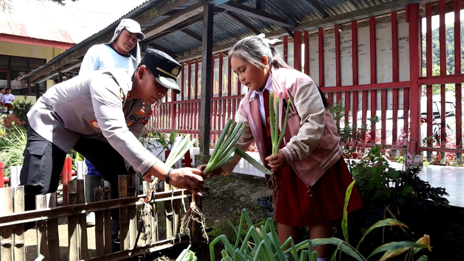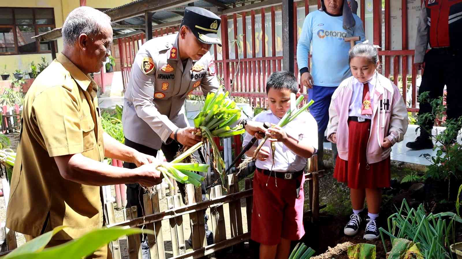 Totalitas dalam Inovasi, Kapolres Kotamobagu Jadi Guru Bertani Sehari untuk Siswa SD di Desa Sinsingon Barat