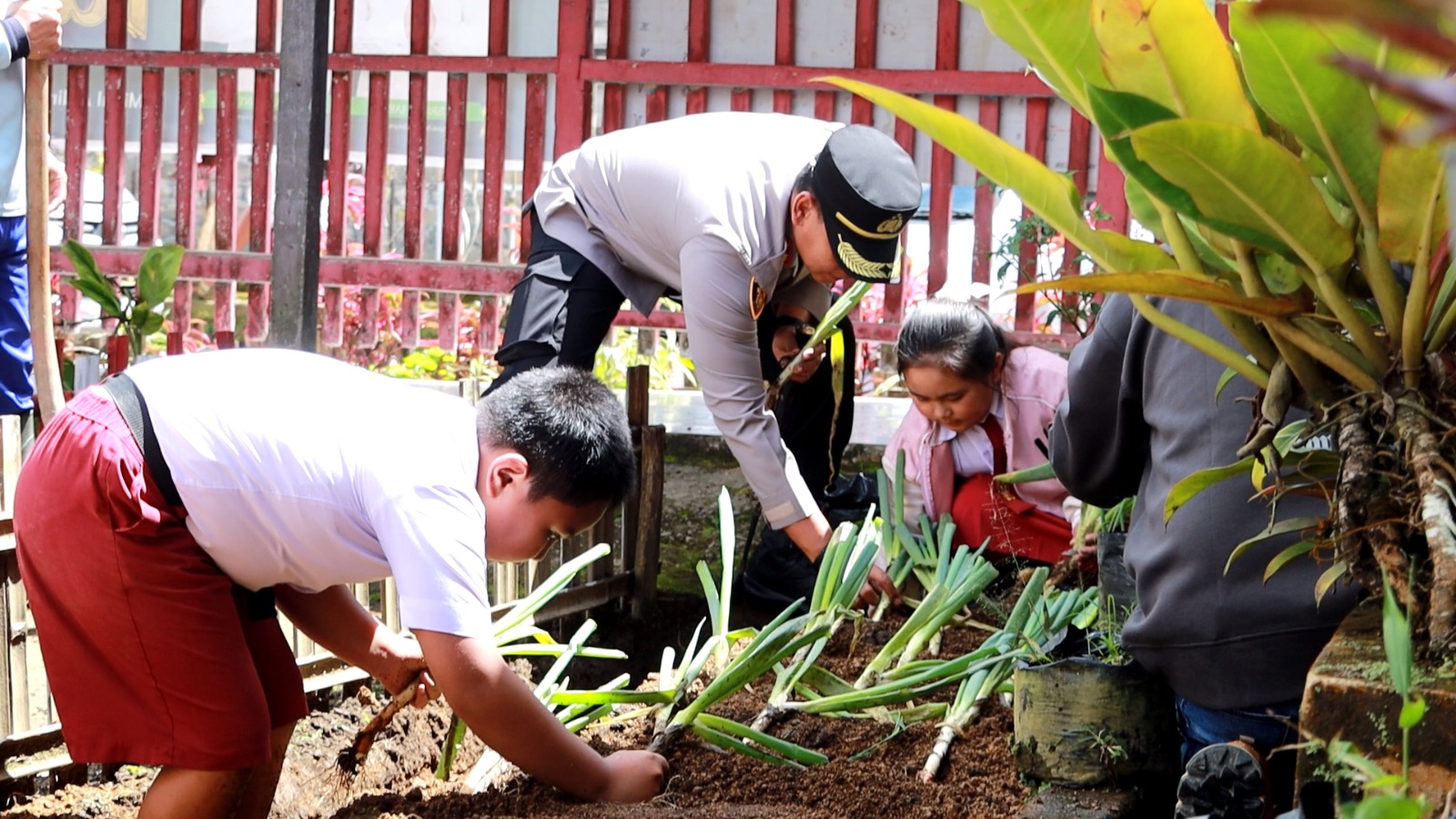 Kegiatan ini menjadi bagian dari program edukasi pertanian dasar yang dirancang untuk menumbuhkan kecintaan anak-anak terhadap dunia pertanian serta memupuk kesadaran akan pentingnya ketahanan pangan lokal. Dengan penuh totalitas layaknya seorang guru Kapolres Irwanto tampak membaur penuh semangat bersama para siswa di pekarangan sekolah yang telah disulap menjadi mini lahan pertanian edukatif.