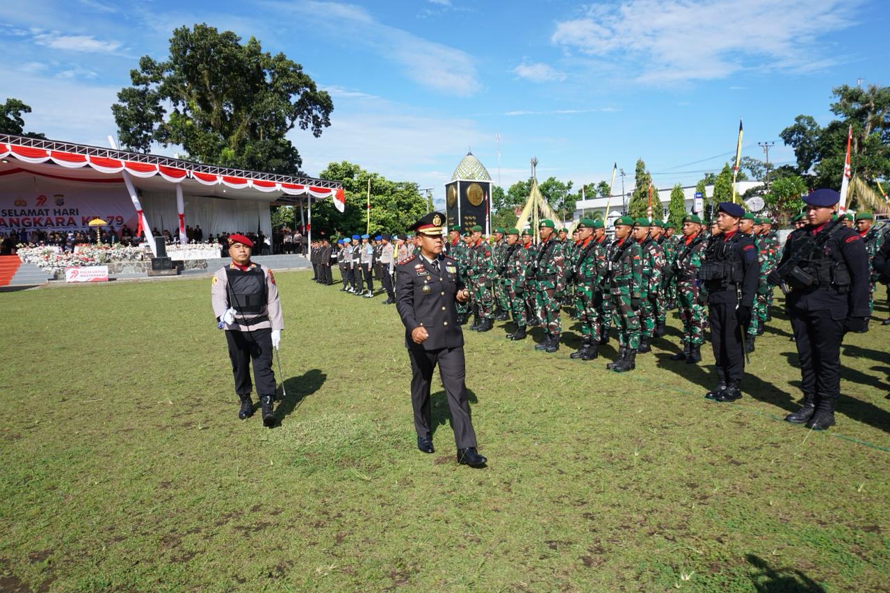 Kapolres Kotamobagu AKBP Irwanto SIK MH, dalam kesempatan tersebut, membacakan amanat Gubernur Sulawesi Utara yang menekankan pentingnya sinergitas antara TNI-Polri dan seluruh elemen masyarakat dalam menjaga keamanan dan ketertiban, serta mendukung pembangunan daerah.