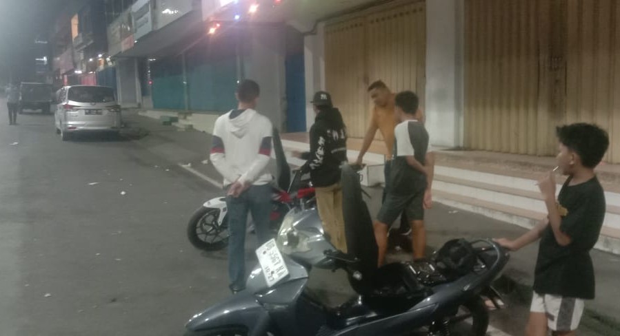 Sementara itu, saat menyusuri pusat pertokoan, personel mendapati sekelompok remaja mengendarai sepeda motor. Ketika hendak dilakukan pemeriksaan, para remaja tersebut melarikan diri. Salah satu pemuda yang kedapatan menggunakan sepeda motor dengan knalpot bising berhasil diamankan bersama kendaraannya.