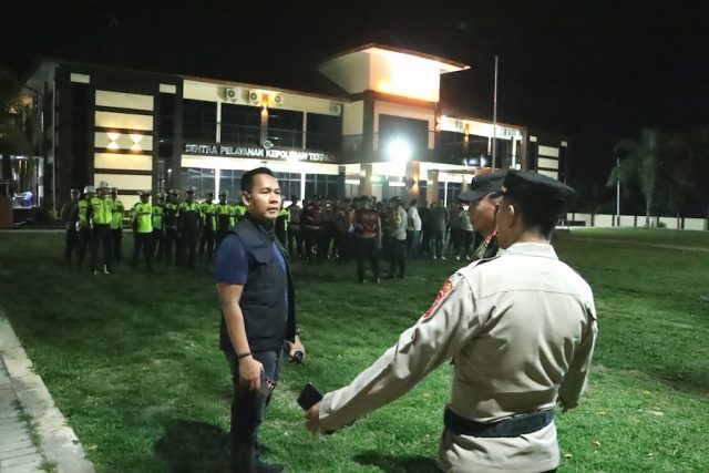 Kapolres Kotamobagu AKBP Irwanto, SIK, MH memberikan arahan kepada personal yang dipimpin Kabag Ops Polres Kotamobagu Kompol Jendri Sermanus Lewan, SE