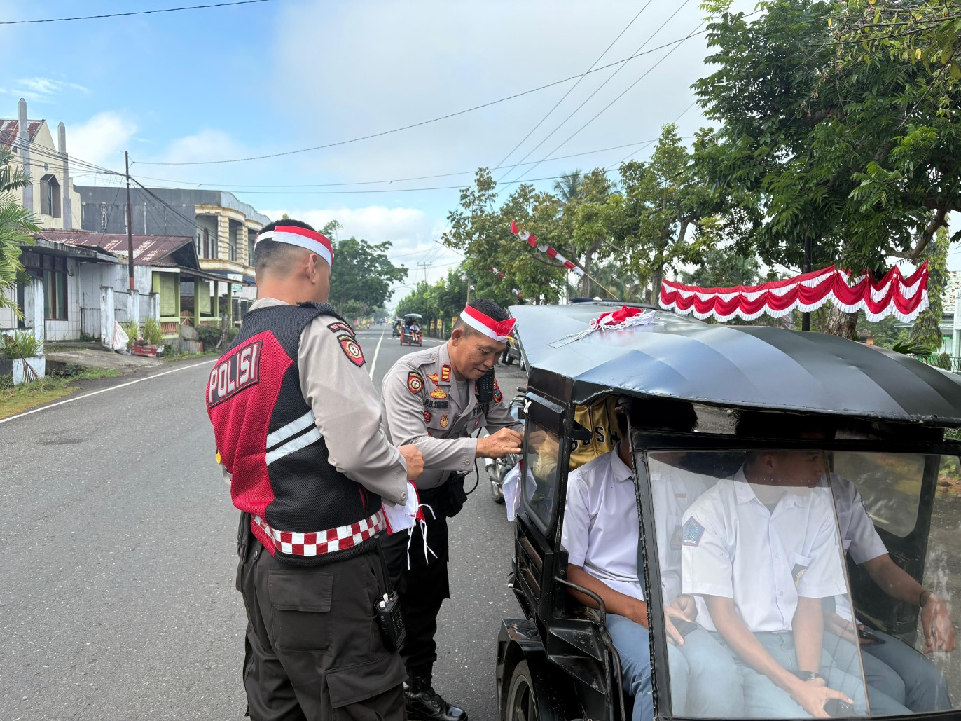 Humas Polres Kotamobagu – Untuk menyemarakkan HUT ke-80 kemerdekaan Republik Indonesia, personil Polres Kotamobagu bagikan bendera merah putih kepada masyarakat, Selasa (5/7/2025).