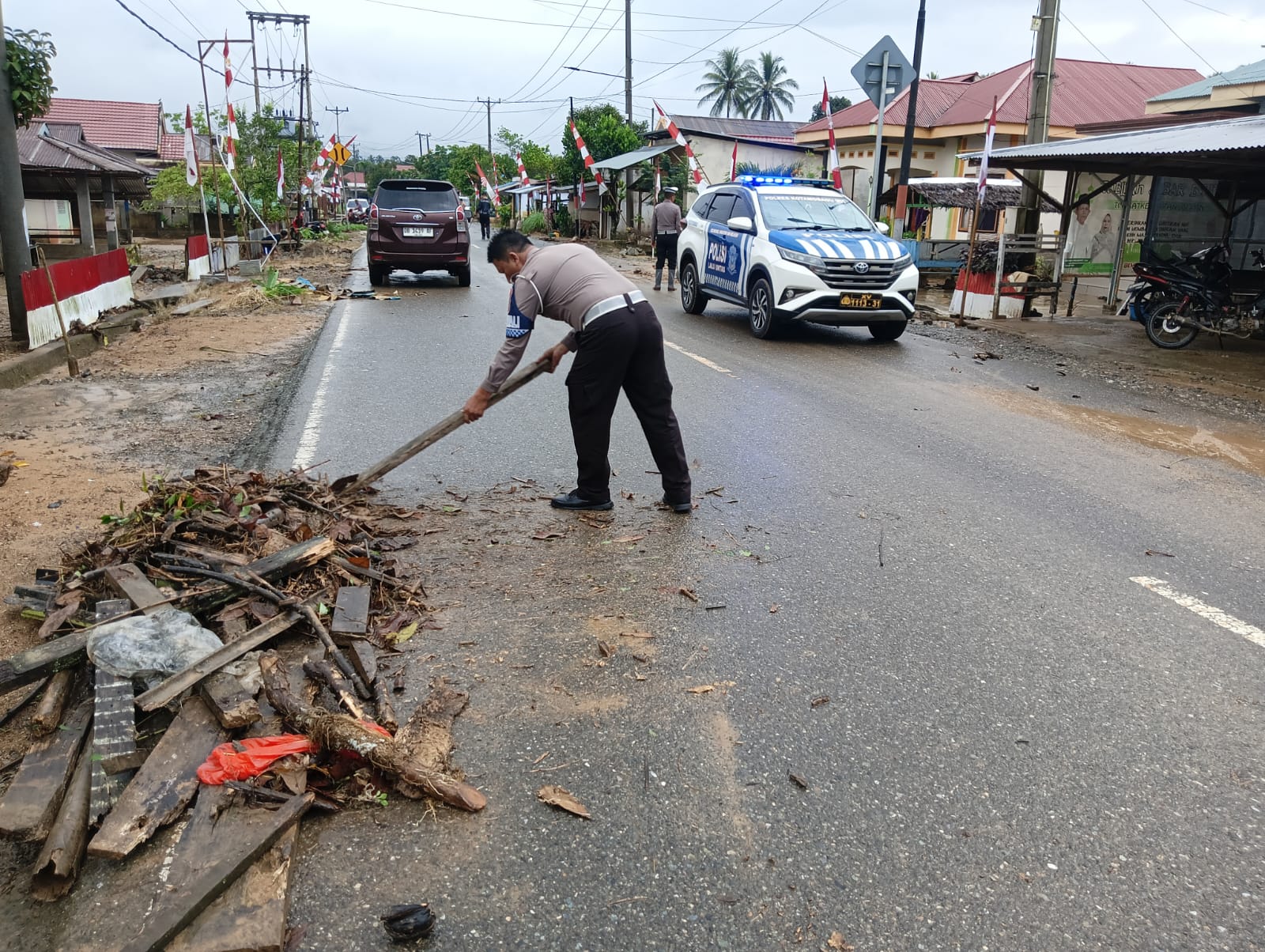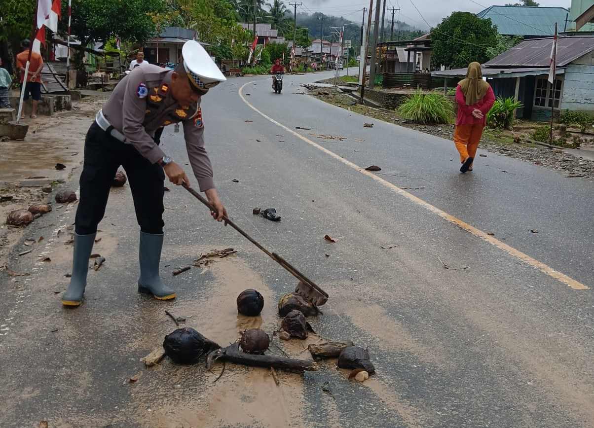 “Kami bergerak cepat membersihkan material agar masyarakat dapat kembali melintas dengan aman dan lancar”, ujar IPTU Luster Simanjuntak.