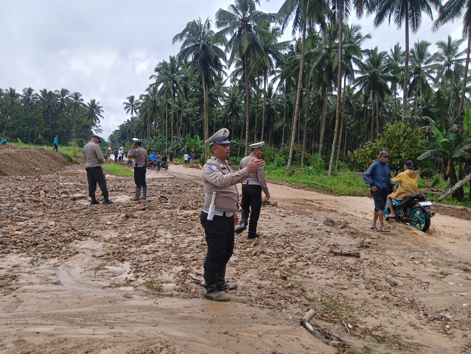 Melihat kondisi tersebut, Polres Kotamobagu bertrindak cepat mendatangi sejumlah titik terdampak, melalui Satuan Lalu Lintas dan Polsek Lolayan segera mengambil langkah cepat untuk mengatasi hambatan tersebut.