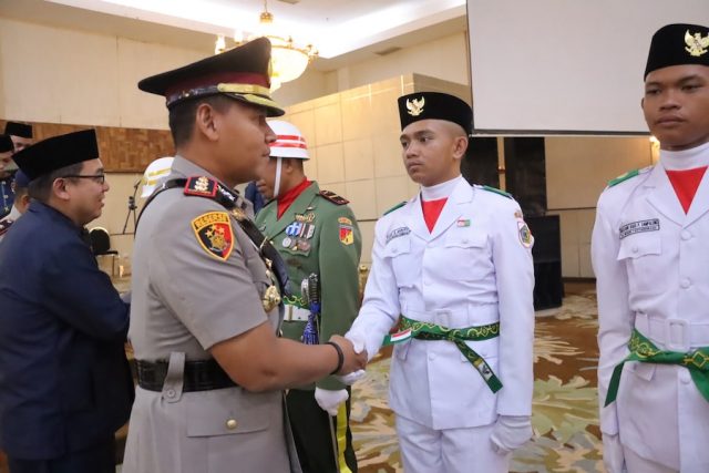 Humas Polres Kotamobagu – Kapolres Kotamobagu AKBP Irwanto, SIK,MH hadiri kegiatan pengukuhan Pasukan Pengibar Bendera Pusaka (Paskibraka) Kota Kotamobagu Tahun 2025 yang digelar di Ballroom Hotel Sutan Raja, Jumat (15/8/2025) malam.