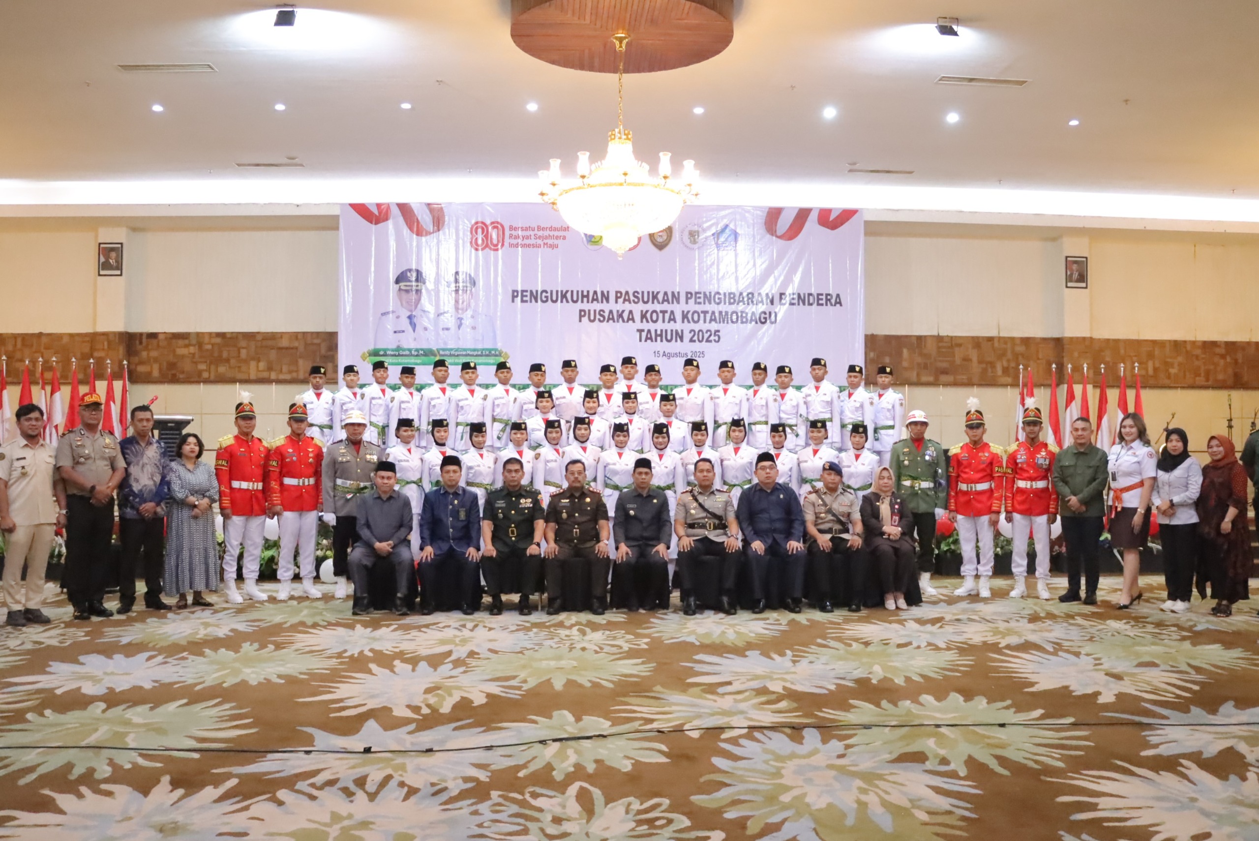 Pengukuhan tersebut menjadi momen penting bagi para putra-putri terpilih yang akan mengemban tugas mengibarkan sang Merah Putih pada Upacara hari kemerdekaan RI ke-80 di lapangan Boki Hotinimbang Kotamobagu, Minggu (17/8/2025) nanti.