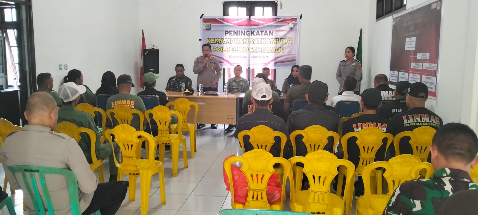 Humas Polres Kotamobagu – Sebanyak 20 personil perlindungan masyarakat (Linmas) se-Kecamatan Kotamobagu Barat mendapat pelatihan peningkatan kemampuan dari Satuan Binmas Polres Kotamobagu di aula Kecamatan Kotamobagu Barat, Kamis (28/8/2025).
