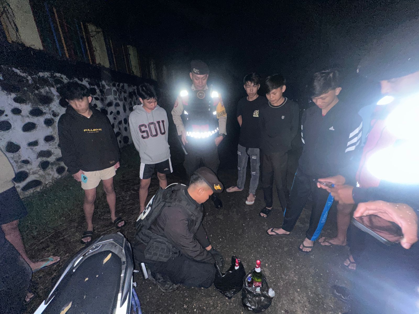 Saat dilakukan pemeriksaan, tim mendapati barang bukti berupa beberapa botol minuman keras serta obat jenis Neometor. Barang bukti tersebut langsung diamankan oleh petugas untuk mencegah penyalahgunaan lebih lanjut.