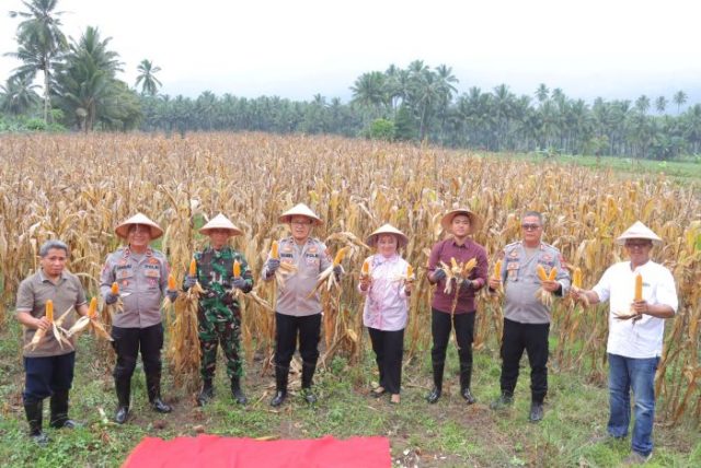 Humas Polres Kotamobagu – Dalam rangka mendukung program pemerintah di bidang ketahanan pangan, Polres Kotamobagu melaksanakan Panen Raya Serentak Kuartal III Program Ketahanan Pangan Nasional, di lahan jagung Perkebunan Bubak, Desa Bungko, Kecamatan Kotamobagu Selatan. Kegiatan ini digelar serentak melalui Zoom Meeting Mabes Polri yang diikuti oleh seluruh Polda dan Polres jajaran di Indonesia,Sabtu (27/9/2025).