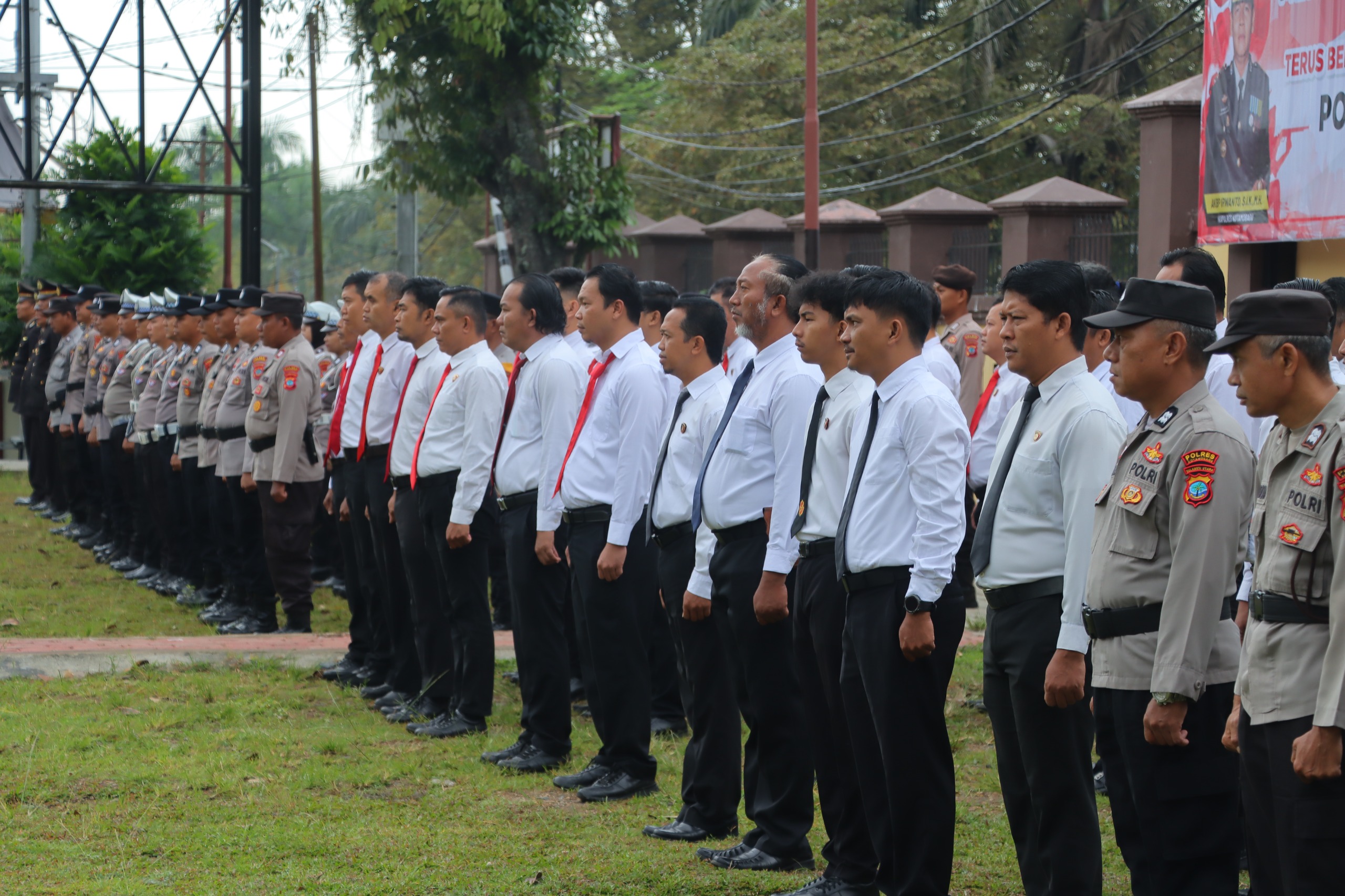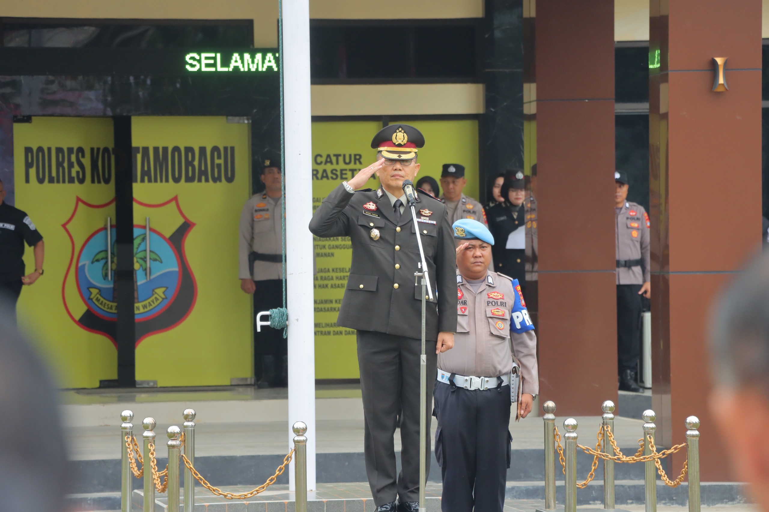 Kapolres Kotamobagu yang diwakili Wakapolres Kotamobagu Kompol Romel Pontoh, SIP, MAP bertindak sebagai inspektur Upacara yang diikuti oleh pejabat utama, perwira staf dan personil Polres jajaran.