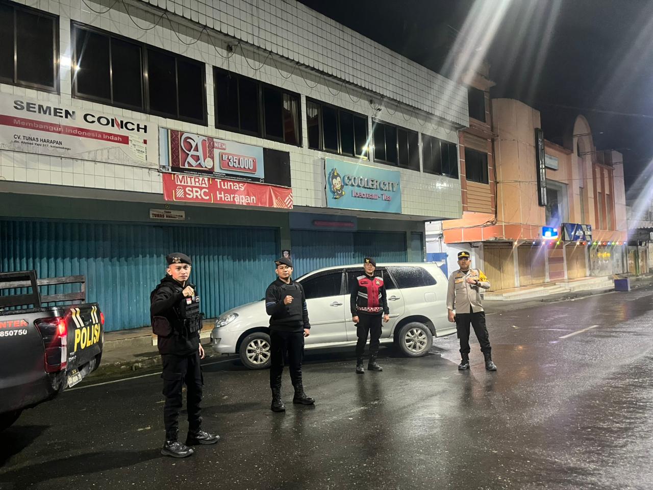 Selanjutnya pada Jumat dini hari (21/11/2025) pukul 02.30 WITA, tim Pantera kembali melanjutkan patroli ke depan Pertokoan Abdi. Pemantauan dilakukan untuk memastikan keamanan lingkungan pada jam rawan. Hasilnya, tidak ditemukan adanya gangguan, dan aktivitas warga di sekitar pertokoan berjalan dengan aman serta terkendali.