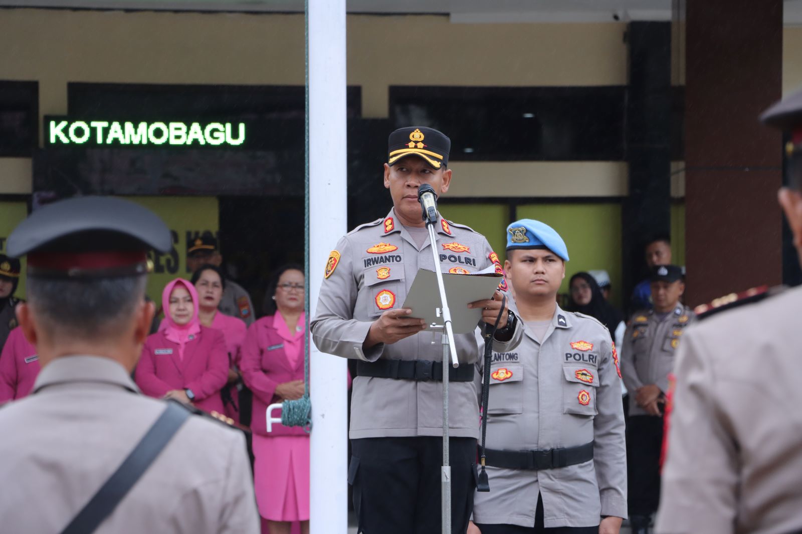 Upacara dipimpin langsung oleh Kapolres Kotamobagu AKBP Irwanto, SIK, MH, selaku Inspektur Upacara, dan dihadiri Wakapolres Kompol Romel Pontoh, SIP, MAP, para Pejabat Utama (PJU), para Kapolsek, perwira, serta seluruh personel Polres Kotamobagu.