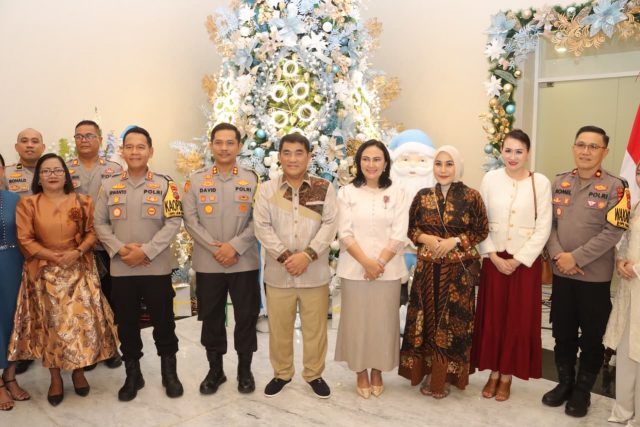 Humas Polres Kotamobagu – Kapolres Kotamobagu AKBP Irwanto, SIK MH bersama para Pejabat Utama Polres menghadiri kegiatan open house Natal 2025 yang digelar oleh Gubernur Sulawesi Utara Mayjen TNI (Purn) Yulius Selvanus, SE di Bumi Beringin, Manado, Rabu (25/12/2025). Kehadiran Kapolres dalam agenda tersebut menjadi bagian dari upaya mempererat silaturahmi lintas institusi sekaligus memperkuat soliditas dalam menjaga stabilitas keamanan dan ketertiban masyarakat di Sulawesi Utara.
