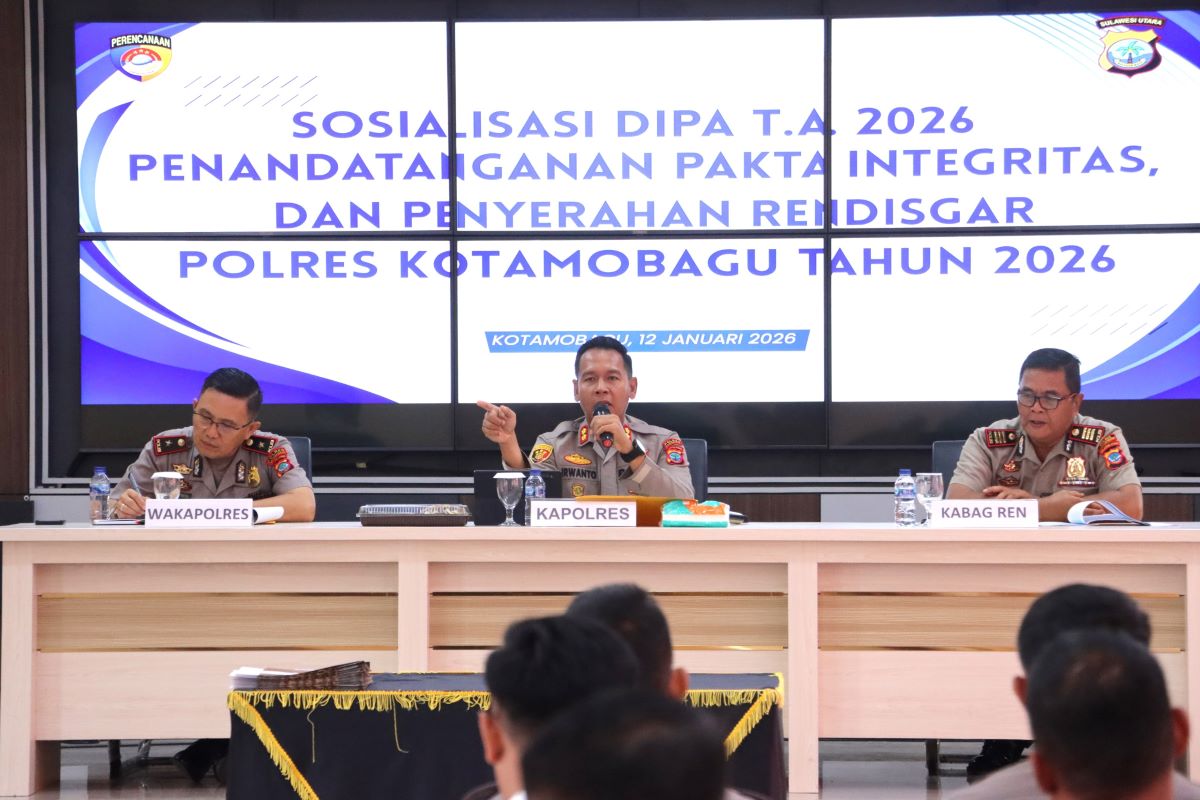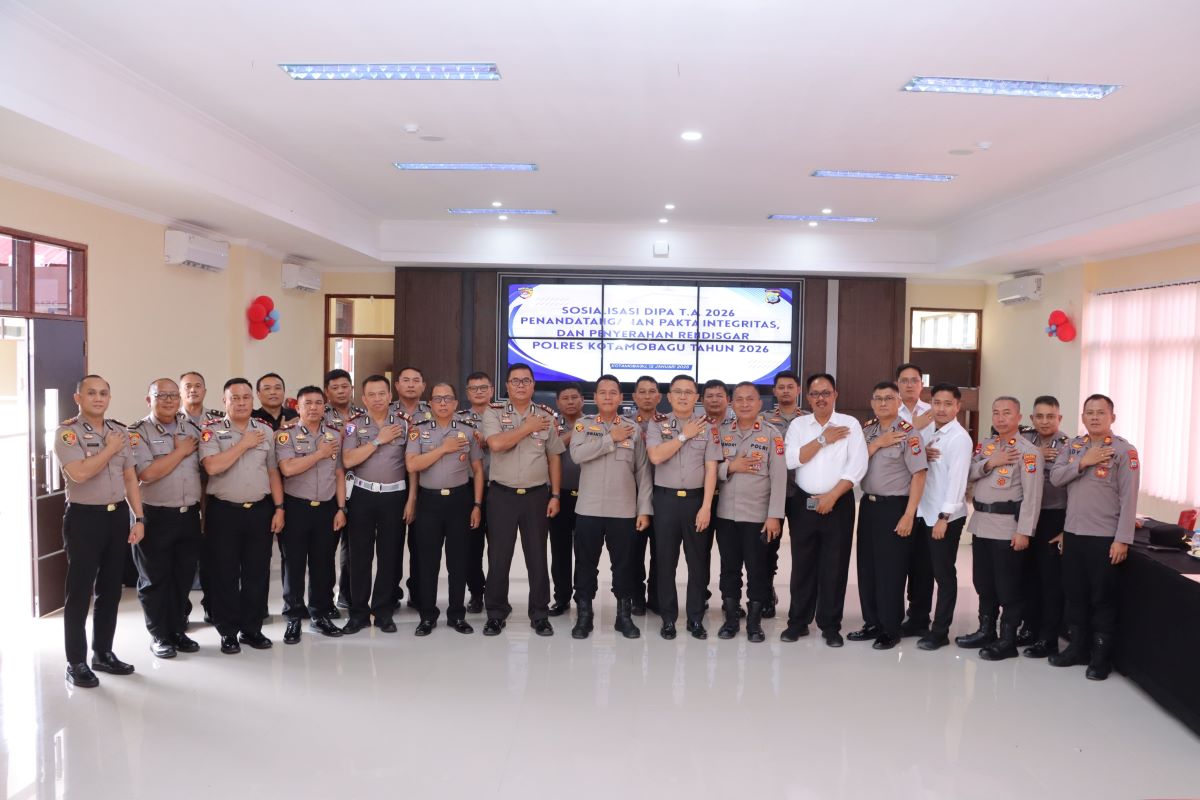 Tegaskan Komitmen Bersih dan Akuntabel! Kapolres Kotamobagu Pimpin Sosialisasi DIPA 2026 dan Tanda Tangani Pakta Integritas