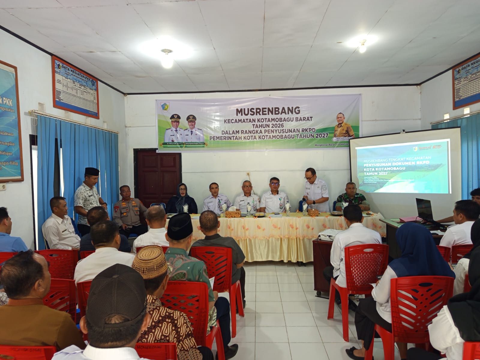 Kegiatan Musrenbang tersebut dibuka oleh Asisten II Pemerintah Kota Kotamobagu Noval Manoppo, SE, ME, serta dihadiri unsur TNI-Polri, DPRD, kepala OPD, lurah, sangadi, BPD, LPM, dan perangkat kelurahan/desa se-Kecamatan Kotamobagu Barat. Forum ini menjadi wadah strategis untuk menghimpun aspirasi masyarakat sekaligus merumuskan prioritas pembangunan tahun 2027.