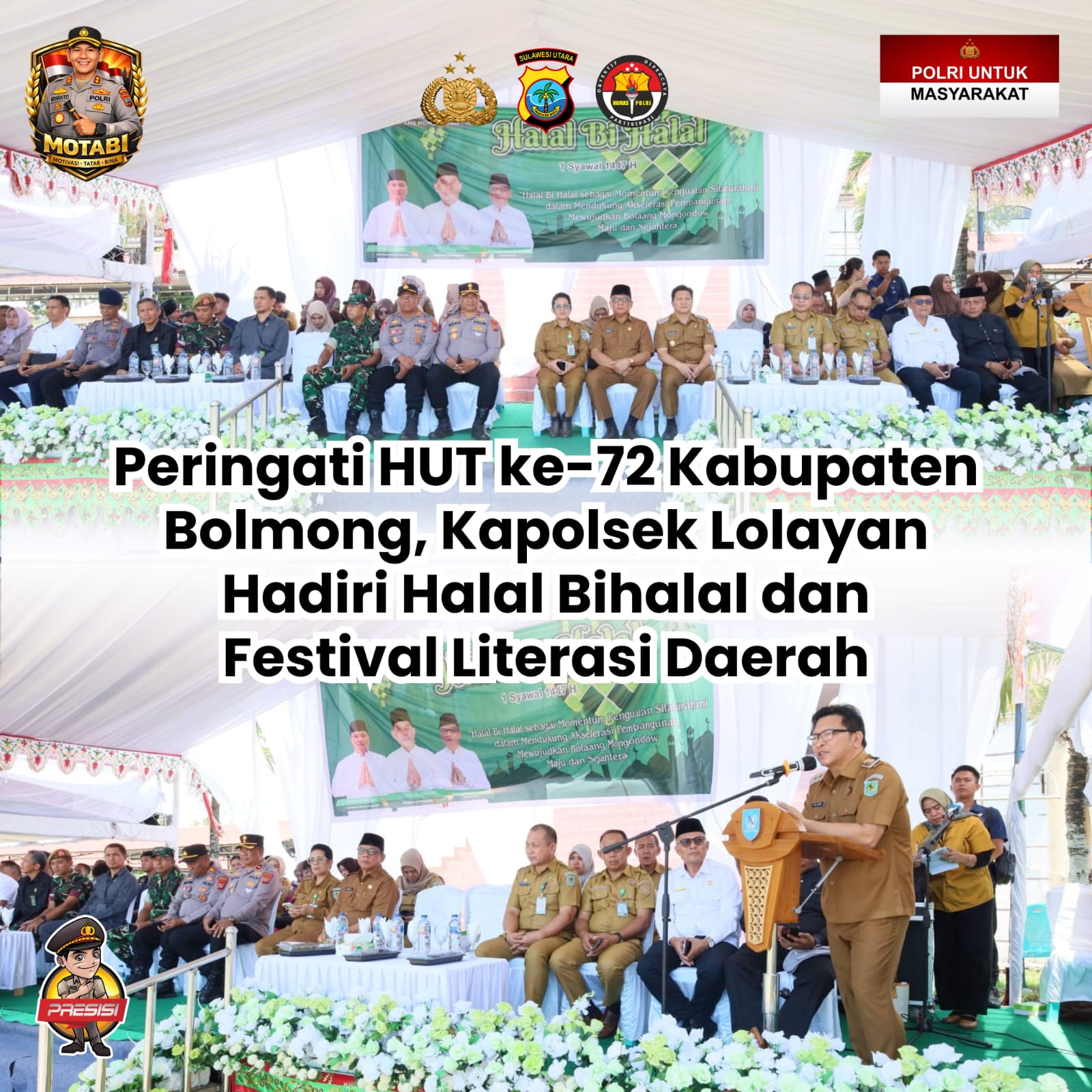 Peringati HUT ke-72 Kabupaten Bolmong, Kapolsek Lolayan Hadiri Halal Bihalal dan Festival Literasi Daerah