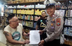 Sambangi Toko Sparepart, Satlantas Polres Kotamobagu Sosialisasi Larangan Knalpot Brong