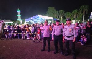 Humas Polres Kotamobagu - Personil Polres Kotamobagu melakukan pengamanan dalam acara Music Mate yang dilaksanakan di Lapangan Nunuk Kelurahan Matali, Sabtu (28/10/2023).