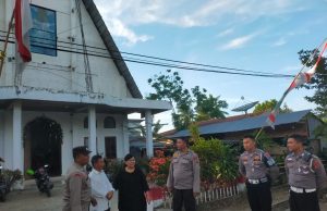 Puluhan Personil Polres Kotamobagu Lakukan Pengamanan Perayaan Pengucapan Syukur Umat Kristen
