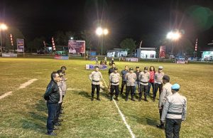 Humas Polres Kotamobagu - Personil Polres Kotamobagu melakukan pengamanan Open Turnamen Sepak Bola Putri Walikota Cup yang dilaksanakan Lapangan oOahraga Kelurahan Pobundayan, Minggu (13/08/2023).