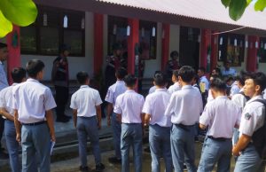 Humas Polres Kotamobagu – Tim Patroli Ranmor R2 memberikan himbauan Kamtibmas kepada seluruh Pelajar Siswa-Siswi sebelum mengikuti jam belajar dimulai, Senin (12/06/2023).