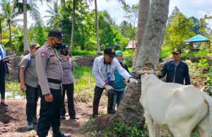 Polres Kotamobagu Dampingi Pelaksanaan Vaksinasi Penyakit Mulut dan Kuku Pada Hewan Ternak