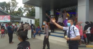 Polres Kotamobagu Bubarkan Kerumunan Antrian Nasabah Bank yang melanggar Prokes