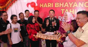 Gelar Syukuran Hari Bhayangkara Ke-77, Kapolres mendapat kejutan Kue Ultah dari...