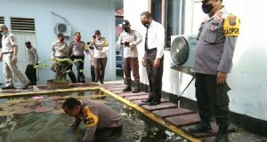 Sekitar 20 orang Personil Polres Kotamobagu satu persatu menceburkan diri ke...