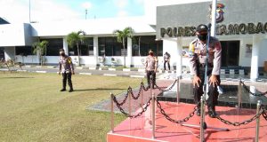 Tetap dengan protokol kesehatan yang ketat, Polres Kotamobagu laksanakan gelar pasukan OMP.