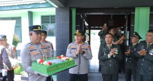 Soliditas TNI-Polri, Kapolres Kotamobagu Datangi Kodim 1303/BM Beri Surprise HUT TNI...