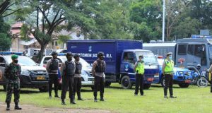 Patroli gabungan TNI-Polri jaga Sitkamtibmas wilayah hukum Polres Kotamobagu saat perayaan...